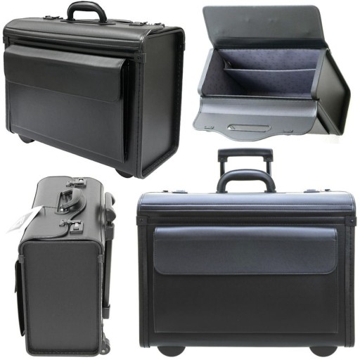 Wysokiej jakości neseser na kółkach renomowanej belgijskiej marki Davidt's. Kufer charakteryzuje się dużą wytrzymałością i funkcjonalnością. Dzięki swoim rozmiarom pomieści różnego rodzaju sprzęt i akcesoria niezbędne do pracy, jak również dużą ilość teczek, a nawet segregatory. Kółka ułatwiają transport przy dużych obciążeniach. Pilotka sprawdzi się zarówno w burze jak i delegacji, bez problemu ułatwi różnego rodzaju pracę w terenie.