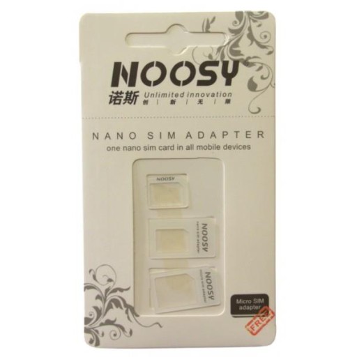 Adapter NOOSY zmieni rozmiary twojej karty SIM na microSIM lub nanoSIM.