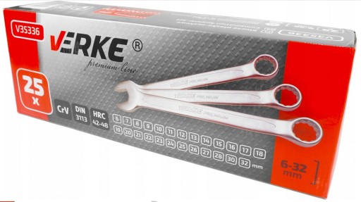 ✅ KLUCZE PŁASKO-OCZKOWE VERKE PREMIUM ZESTAW 25 SZTUK 6 - 32 + POKROWIEC