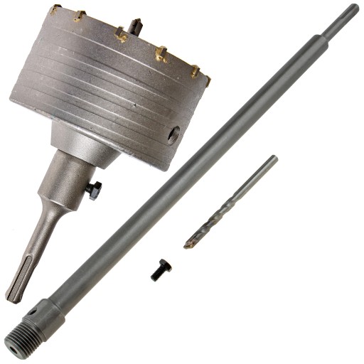OTWORNICA KORONKOWA / FREZ DO MURU, BETONU 100mm + ADAPTER PRZEDŁUŻKA SDS PLUS 450 MM