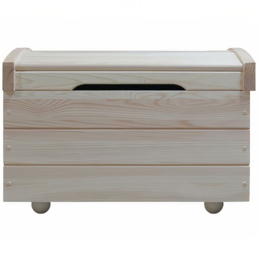 Drewniany kufer wykonany w całości z solidnego, litego drewna sosnowego. Zamontowane zostały solidne, płaski oraz ozdobne zawiasy.