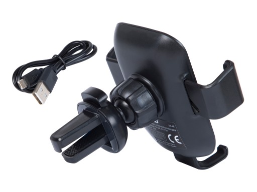 Grawitacyjny uchwyt samochodowy z ładowarką indukcyjną do zamontowania na kratce wentylacyjnej auta. Produkt jest niezwykle prosty w obsłudze, wystarczy odłożyć na niego telefon, a szczęki zamkną się automatycznie. Posiada trójkątną konstrukcję zapewniającą stabilność podczas jazdy, duże możliwości regulacji oraz gumowe nakładki, a także specjalne wycięcie które umożliwia podłączenie ładowarki.