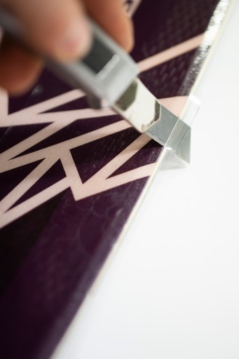 - Teraz nadszedł czas, aby przyciąć taśmę do kształtu narty za pomocą nożyka.