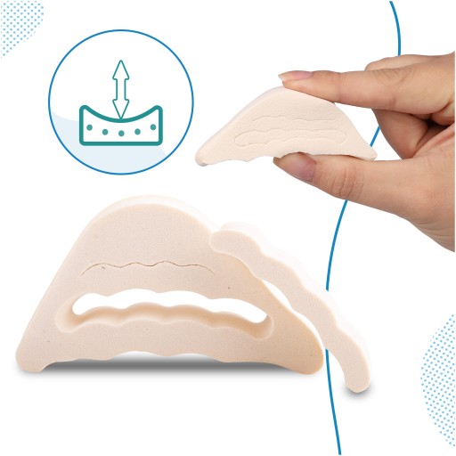 Wypełniacze wykonane są z wygodnej miękkiej elastycznej oddychającej pianki, która dostosowuje się swoim kształtem do palców. Lekkie, miękkie wypełniacze pomagają zmniejszyć rozmiar obuwia, likwidują luz w bucie. Znakomicie sprawdzają się gdy czubki butów są wąskie i niewygodne. Zapobiegają obtarciom palców.