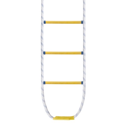 Drabina wykonana jest z połączonych ze sobą setek małych nitek polipropylenowych, charakteryzujących się bardzo wysoką wytrzymałością. Nitki zaplatane maszynowo z wysoką precyzją tworzą bardzo mocną linę o średnicy 20mm o okrągłym kształcie. Do budowy drabiny celowo został zastosowany polipropylen, który cechuje się bardzo wysoką wytrzymałością oraz całkowitą odpornością na warunki atmosferyczne. Setki małych nitek wchodzących w skład liny sprawia, że jest to najlepsze i najbezpieczniejsze rozwiązanie.