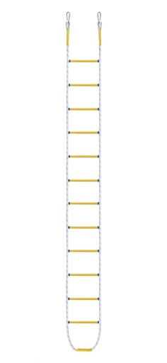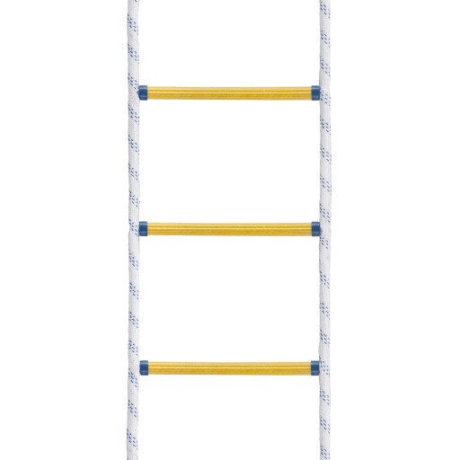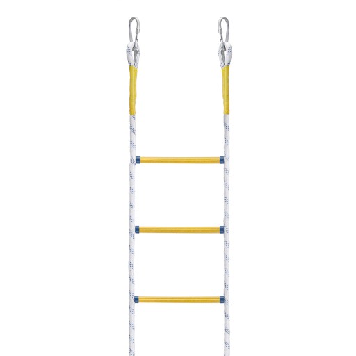 Drabina wykonana jest z połączonych ze sobą setek małych nitek polipropylenowych, charakteryzujących się bardzo wysoką wytrzymałością. Nitki zaplatane maszynowo z wysoką precyzją tworzą bardzo mocną linę o średnicy 20mm o okrągłym kształcie. Do budowy drabiny celowo został zastosowany polipropylen, który cechuje się bardzo wysoką wytrzymałością oraz całkowitą odpornością na warunki atmosferyczne. Setki małych nitek wchodzących w skład liny sprawia, że jest to najlepsze i najbezpieczniejsze rozwiązanie.