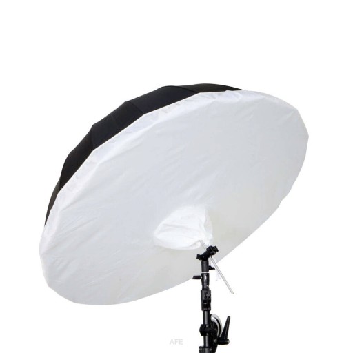 Dyfuzor charakteryzuje się lekką konstrukcją, dzięki której z łatwością założysz go na parasol. Posiada specjalnie zaprojektowany otwór, który pozwala na montaż lampy studyjnej. Otwór ma dodatkowo ściągacz, dzięki któremu dopasujesz jego średnicę do lampy, zabezpieczając również przed stratami światła.