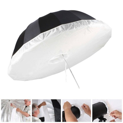 Dyfuzor sprawia, że parasol zyskuje właściwości softboxu. Znacznie zwiększa efektywność świetlną oraz zapewnia lepszą kontrolę nad światłem, zapewniając miękkie i rozproszone światło, co w efekcie daje bardziej naturalne efekty na zdjęciach, bez ostrych cieni.
