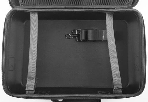 Futerał podróżny posiada specjalny pasek dzięki czemu można go powiesić na ramieniu i przenosić jak torbę. Można także skorzystać z praktycznej, wygodnie wyprofilowanej rączki i przenosić go jak walizkę.