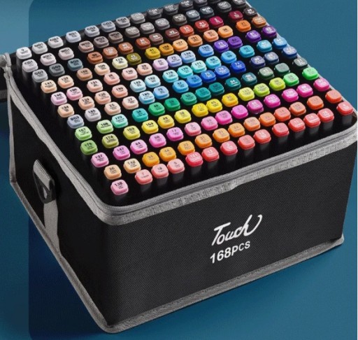 Zestaw dwustronnych flamastrów alkoholowych 168szt + CASE z regulowanym paskiem na ramię