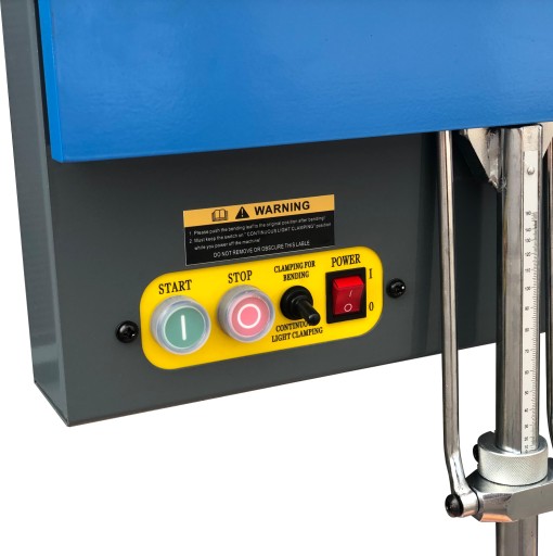 Dociski wyposażone zostały w dokładną regulację dzięki której możemy odsunąć docisk o 2 mm od krawędzi gięcia.