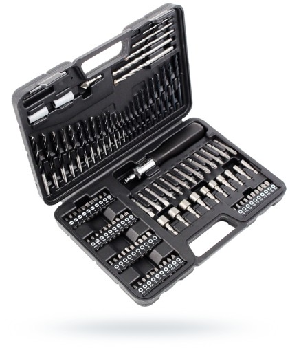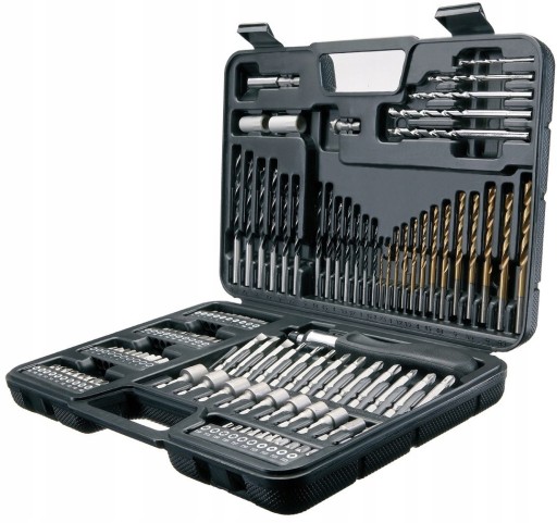 - Zestaw zawieraja HSS-TiN wiertła, wiertła murarskie, gniazda, magnetyczny uchwyt, wyciągów śruby i śrubokręt zapadkowy13 x HSS-TiN wiertła (1,5, 2, 2,5, 3, 3,2, 3,5, 4, 4,5, 4,8, 5, 5,5, 6 i 6,5 mm), 13 x bity bradpoint drewna (3, 3.2, 3.5 , 4, 4.5, 4.8, 5, 5.5, 6, 6.5, 7, 7.5 i 8 mm), 5 bitów x murowane (3, 5,5, 6, 8 i 10mm), 50 x 25mm końcówki śrubokrętów, 13 x 50 mm chwyt sześciokątny wkrętak bitów, 10 x gniazda (5 x 2, 6, 7, 8, 9, 10, 11, 12 i 13 mm), 1 x uchwyt magnetyczny, 1 x zagłębienie, 2 x wirówki śrubowe, 1 x śrubokręt zapadkowy.