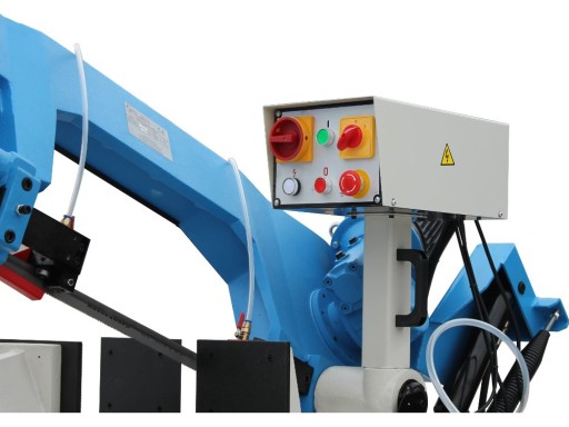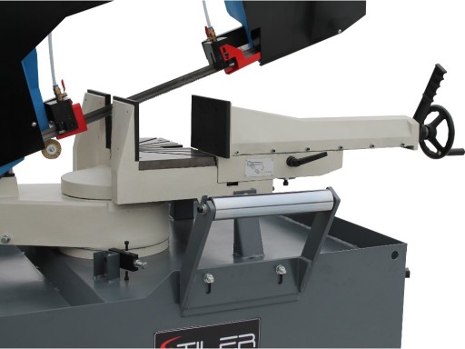 - Ramię przecinarki wykonane z jednolitego żeliwnego odlewu wraz z zastosowanej w tej przecinarce taśmy tnącej o szerokości 27 mm. umożliwia w pełni wykonywanie wieloseryjnych cięć zarówno profili jak i pełnych materiałów.
