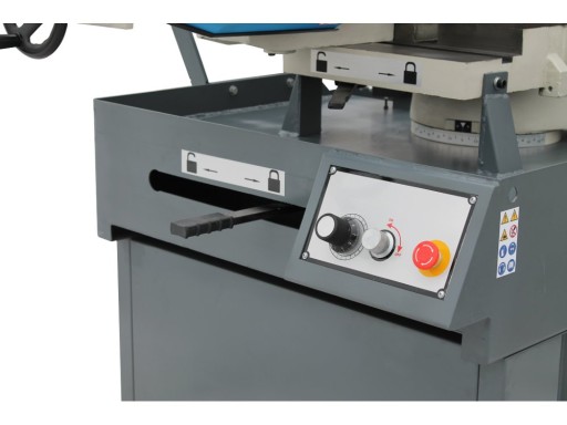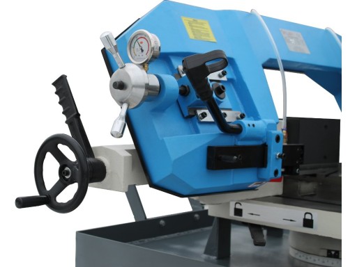 ✅ Posuw podczas cięcia odbywa się grawitacyjnie na zasadzie przepływu oleju w dwukomorowym siłowniku hydraulicznym. Odpowiednią prędkość opadania ramienia ustawia się za pomocą regulatora umieszczonego na pulpicie sterowniczym.