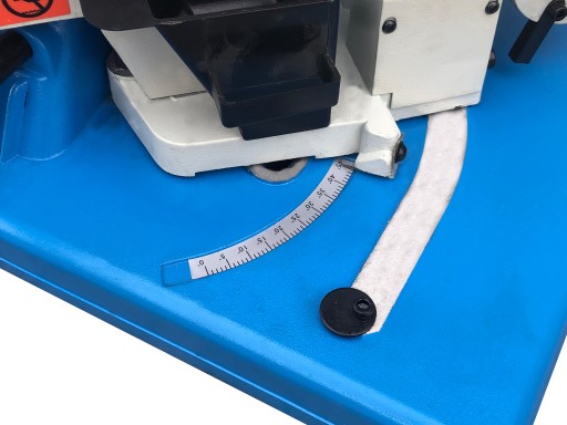 ✅ Przecinarka posiada obrotowe ramię w zakresie 0°-45 ° co znacząco ułatwia cięcie materiału pod kątem. Mimo niewielkich gabarytów maszyna jest bardzo stabilna i nie wpada w wibracje podczas cięcia większych materiałów.