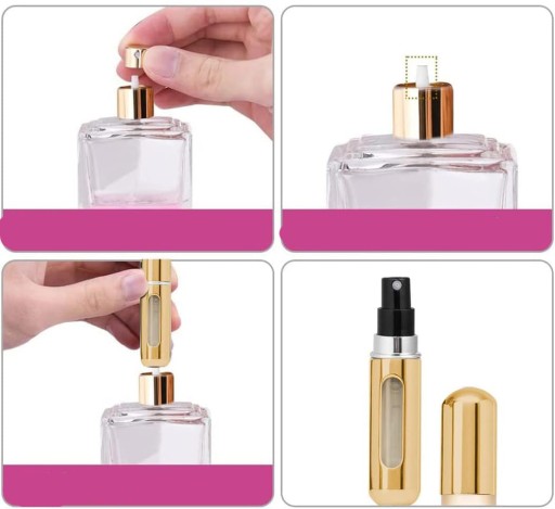 Podróżny atomizer do perfum o pojemności 5ml - miej swój ulubiony zapach zawsze przy sobie! Poręczny i dyskretny atomizer do perfum, który dzięki swym kompaktowym wymiarom zawsze możesz nosić ze sobą.