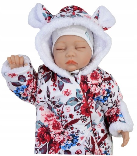 Krój: Pajacyk z kapturkiem i wesołymi uszkami. Zapinany na wygodny zamek od jednej nóżki pod samą szyję. Na końcu zamka przy szyi materiałowe zabezpieczenie, żeby nie uszczypać buzi dziecku ;-) W rękawkach wywijane rękawiczki.