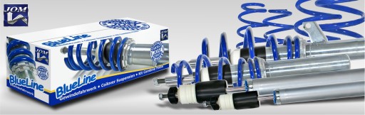 Zestawy zawieszenia Coilover BlueLine to wysokiej klasy komponenty zawieszenia do samochodu z obniżeniem przedniej osi między 40-65 mm i tylnej między 30-60 mm. Zakres regulacji umożliwia indywidualne opuszczanie samochodu. Zestawy mają ogromne pochłanianie siły poprzecznej. Początkowe napięcie sprężyny utrzymuje się w pełnym zakresie regulacji. Regulacja po instalacji.