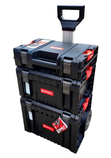 Skrzynka posiada kółka transportowe i jest podstawą systemu PRO marki Qbrick.