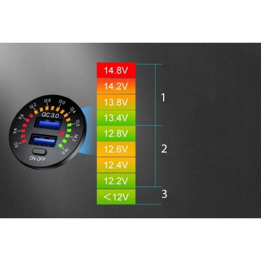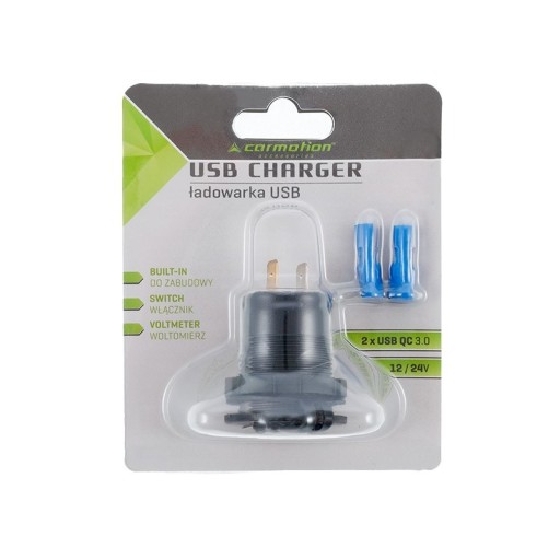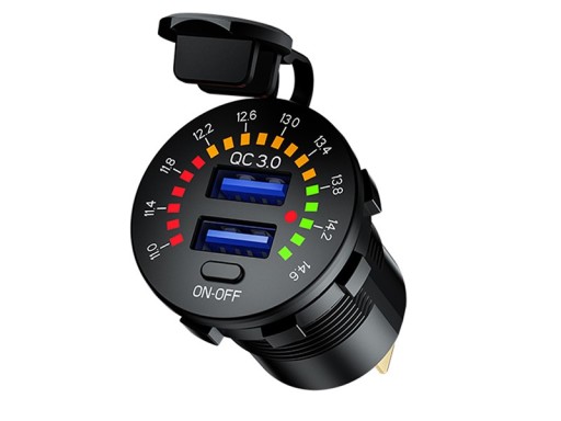 - Ładowarka USB, wyposażona w 2xUSB Quick Charge 3.0, włącznik i woltomierz.