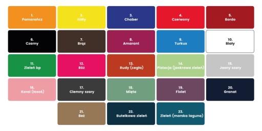 KOLORY I ROZMIARY Z PONIŻSZYCH TABELI KTÓRE NIE SĄ WYSTAWIONE NA ALLEGRO PRODUKUJEMY NA ZAMÓWIENIE