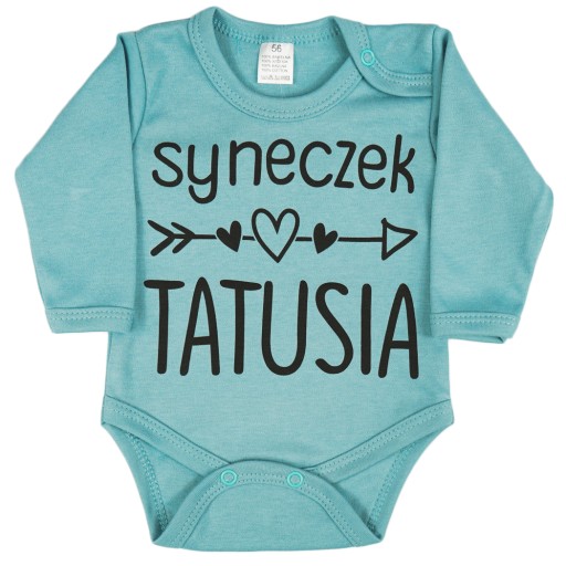 Bawełniane body iceberg rozpinane na ramieniu i w kroku. Body z długim rękawem i napisem "SYNECZEK TATUSIA".