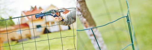 Urządzenie służy do szybkiego i wygodnego montażu np. siatki ogrodzeniowej do drutów naprężających.