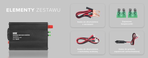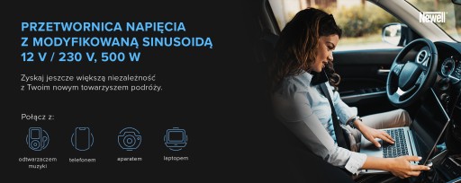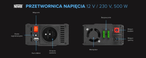- model: przetwornica napięcia Newell z modyfikowaną sinusoidą - 12 V / 230 V, 500 W