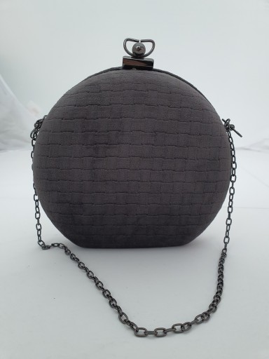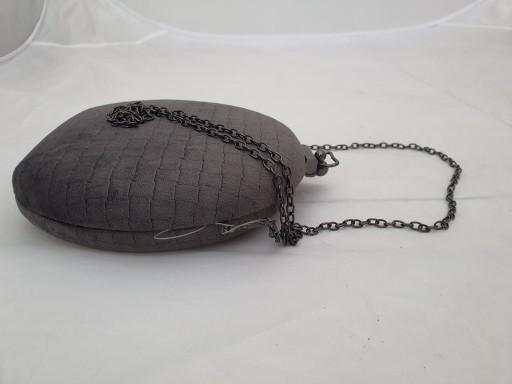 Elegancka torebka wizytowa w kolorze szarym wykonana z miłego w dotyku materiału. Wewnątrz jedna komora w kolorze szarym. Dwa łańcuszki w zestawie.