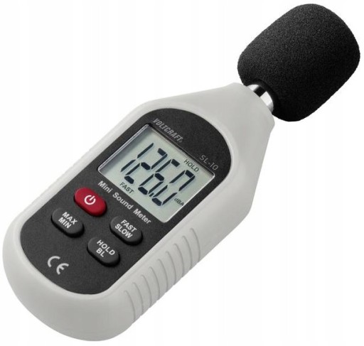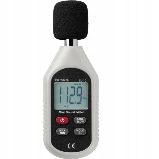 SONOMETR VOLTCRAFT. Decybelomierz VOLTCRAFT SL-10 zapewnia szybkie i łatwe pomiary poziomu dźwięku przy użyciu liniowego ważenia częstotliwości (dBA) przy użyciu zadanych parametrów. Doskonały do prostych pomiarów hałasu otoczenia lub innych dźwięków. Ponadto urządzenie pomiarowe ma dwa różne interwały pomiarowe (szybkie / wolne) dla różnych obszarów zastosowania. Jest idealny do pomiaru szumów pochodzących z otoczenia oraz innych źródeł hałasu.