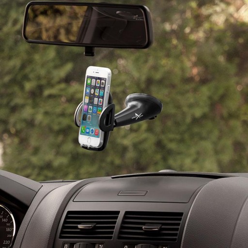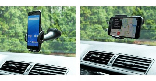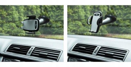 Kulowe połączenie głowicy z mocowaniem do szyby umożliwia ustawienie telefonu zarówno w poziomie jak i w pionie.
