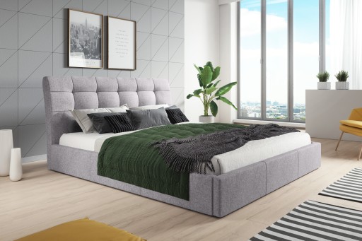 Wygodne dwuosobowe łóżko do sypialni ALAN zapewni Tobie spokojny i komfortowy sen. Posiada wysokie tapicerowane wezgłowie, które może posłużyć jako oparcie. Łóżko posiada pojemnik na pościel wraz ze stelażem elastycznym otwieranym do góry, jest to niezwykle praktyczne rozwiązanie które pozwala zaoszczędzić sporo przestrzeni.