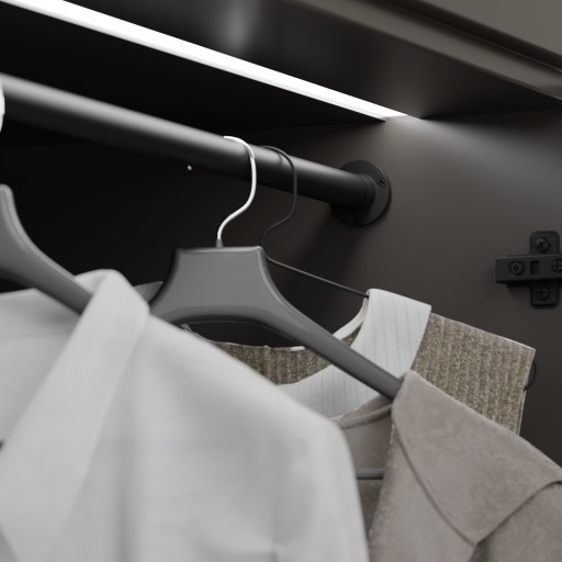 Drążki do szafy wprowadzają elegancki akcent nadając przestrzeni spójny i stylowy wygląd.