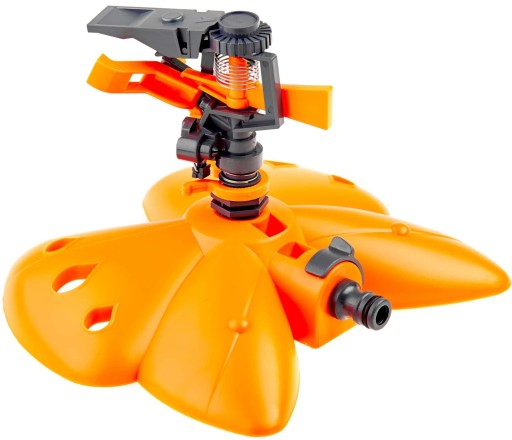 ✅ Zraszacz obrotowy 3-ramienny regulowany na podstawie w kształcie motyla.