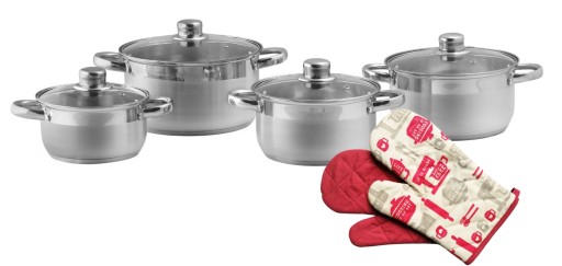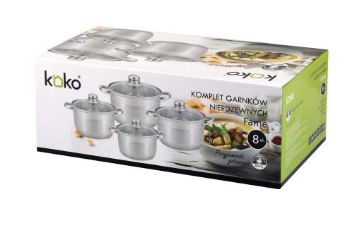 Komplet garnków stal nierdzewna Koko Fame 8 elementów rękawice Fackelmann GRATIS (kolor losowy)