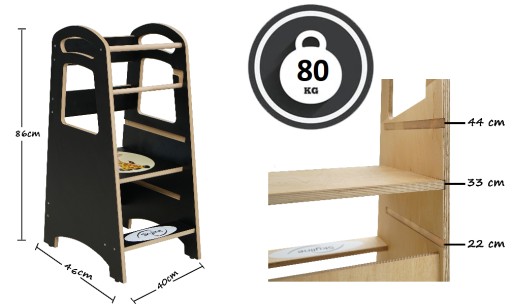 Pomocnik kuchenny Kitchen helper dla dziecka dzieci Tablica 2w1Czarny PL