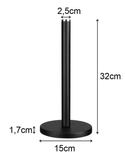 Stojak na ręcznik papierowy Rikon to elegancki i praktyczny dodatek do kuchni. Wykonany ze stali malowanej proszkowo, dobrze użytkowany będzie służył latami. Na czubku stojaka znajduje się element dekoracyjny, wykonany z niemalowanej stali. Stojak Rikon posiada solidną, stabilną podstawę o średnicy 15cm oraz grubości 1,7cm, która zabezpieczy ręcznik przed zamoknięciem oraz zapewni, że stojak nie będzie się chwiał ani przewracał. Od spodu podstawa zabezpieczona jest podkładką z pianki poliuretanowej, która zapobiega zarysowaniu blatu oraz ślizganiu się stojaka. Ładne wykończenie oraz elegancki wygląd stojaka sprawią, że idealnie wkomponuje się we wnętrze urządzone w stylu klasycznym, nowoczesnym lub surowym.