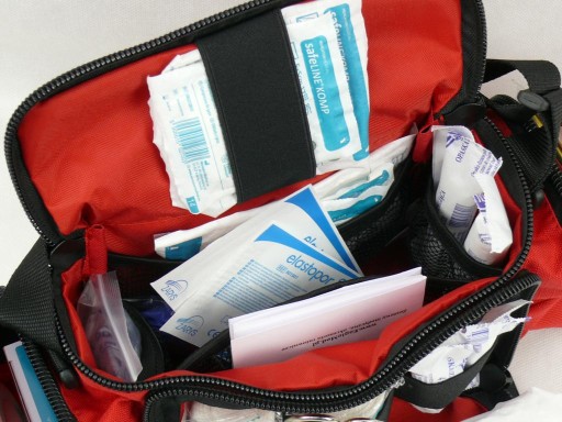 Apteczka polskiej produkcji z polskimi opatrunkami, znacznie lepszymi od pseudo "niemieckich" zestawów DIN.