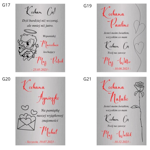 Na prośbę klienta wykonujemy GRAWER, na blaszkach które umieszczamy na tyle obrazka. Treść graweru prosimy umieścić w "WIADOMOŚĆ DO SPRZEDAJĄCEGO"