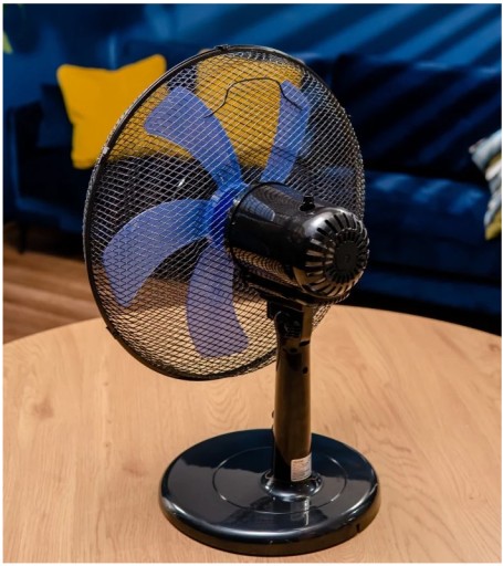 Wentylator biurkowy o mocy 50 W. Średnica wynosi 40 cm. Obudowa wykonana z wysokiej jakości tworzywa sztucznego. 3-stopniowa regulacja prędkości wentylatora.