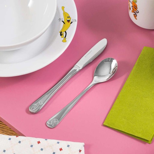 Łyżka stołowa marki Forgast z linii KIDS wykonana ze stali nierdzewnej 18/8. Linia idealna do przedszkoli i żłobków - specjalnie zaprojektowana dla małych dzieci. Uroczy wzór lwa na trzonku łyżki sprawia, że to świetny wybór dla każdego małego dziecka. Wysoka jakość wykonania.