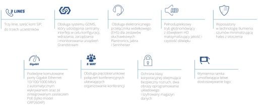 - Dwa przełączane automatycznie porty 10/100/1000 Mbps z autowykrywaniem 10 przycisków szybkiego wybierania z BLF