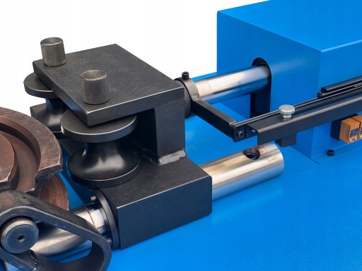 W trybie automatycznym maszyna sama dociska kopyto na odpowiednią odległość. Odległość docisku zależna jest od średnicy rury. Dzięki regulowanemu wyłącznikowi krańcowemu możemy ustawić odpowiedni docisk.