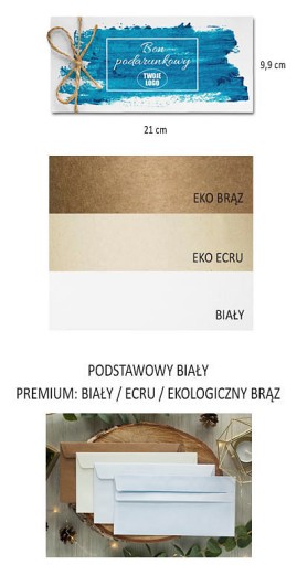 - Format bonów dopasowany do kopert DL: 21 x 9,9 cm