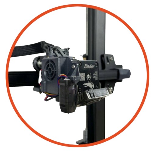 Creality Ender-3 S1 ma wbudowany ekstruder direct drive. Opracowana przez producenta dwubiegowa wytłaczarka ma dwa metalowe koła zębate, pracujące z przełożeniem 1:3,5. Dzięki sile nacisku do 80 N, ekstruder zapewnia płynne podawanie filamentów, bez poślizgu. Działa wydajnie nawet przy drukowaniu elastycznych materiałów, takich jak TPU. W porównaniu z innymi ekstruderami direct drive konstrukcja Creality jest lżejsza, charakteryzuje się również bardziej precyzyjnym pozycjonowaniem.