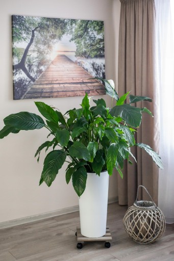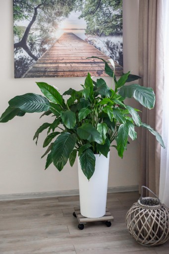✔️ Dzięki wbudowanym kółkom możesz wygodnie przestawić donicę np. przy sprzątaniu lub przy zmianie wystroju.