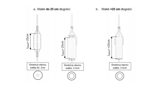 Pręt umożliwia również montaż wałków różnej szerokości: