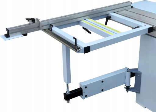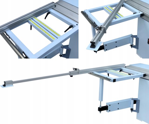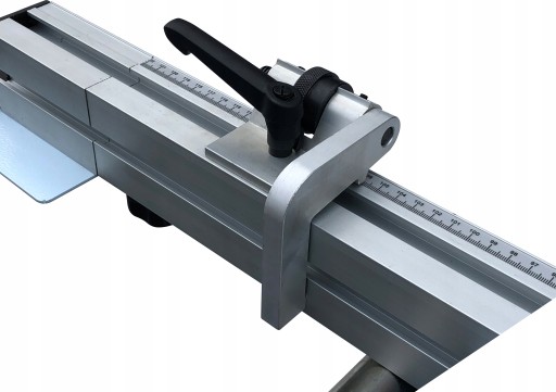 - Masywne prowadnice z podziałkami, wzdłużna (stalowa) oraz kątowa jak i przedłużenie stołu w standardzie.