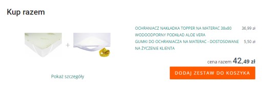 Jeżeli Państwa materac ma inną wysokość niż standardowe 17 cm prosimy w górnej części aukcji w sekcji Kup razem o dodanie do koszyka zestawu ochraniacza na materac z produktem GUMKI DO OCHRANIACZA NA MATERAC - DOSTOSOWANE NA ŻYCZENIE KLIENTA, oraz o podanie w wiadomości do sprzedającego wysokości Państwa materaca. Ochraniacz zostanie dostosowany aby idealnie pasował na Państwa materac.