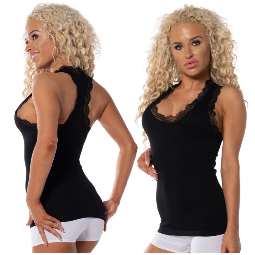 KOSZULKA NA RAMIĄCZKACH BLUZKA TOP DAMSKI Z Koronką Podkoszulek L/XL